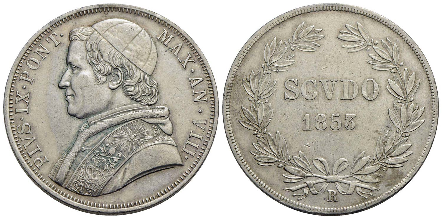 ROMA - Pio IX (1846-1866) - Scudo - 1853 A. VIII - (AG g. 26,9) Pag. 395; Mont. 128 Montatura asportata