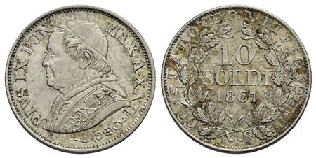 ROMA - Pio IX (1866-1878) - 10 Soldi - 1867 A. XXII - (AG g. 2,5) Pag. 579; Mont. 388<br>SPL-FDC<br>