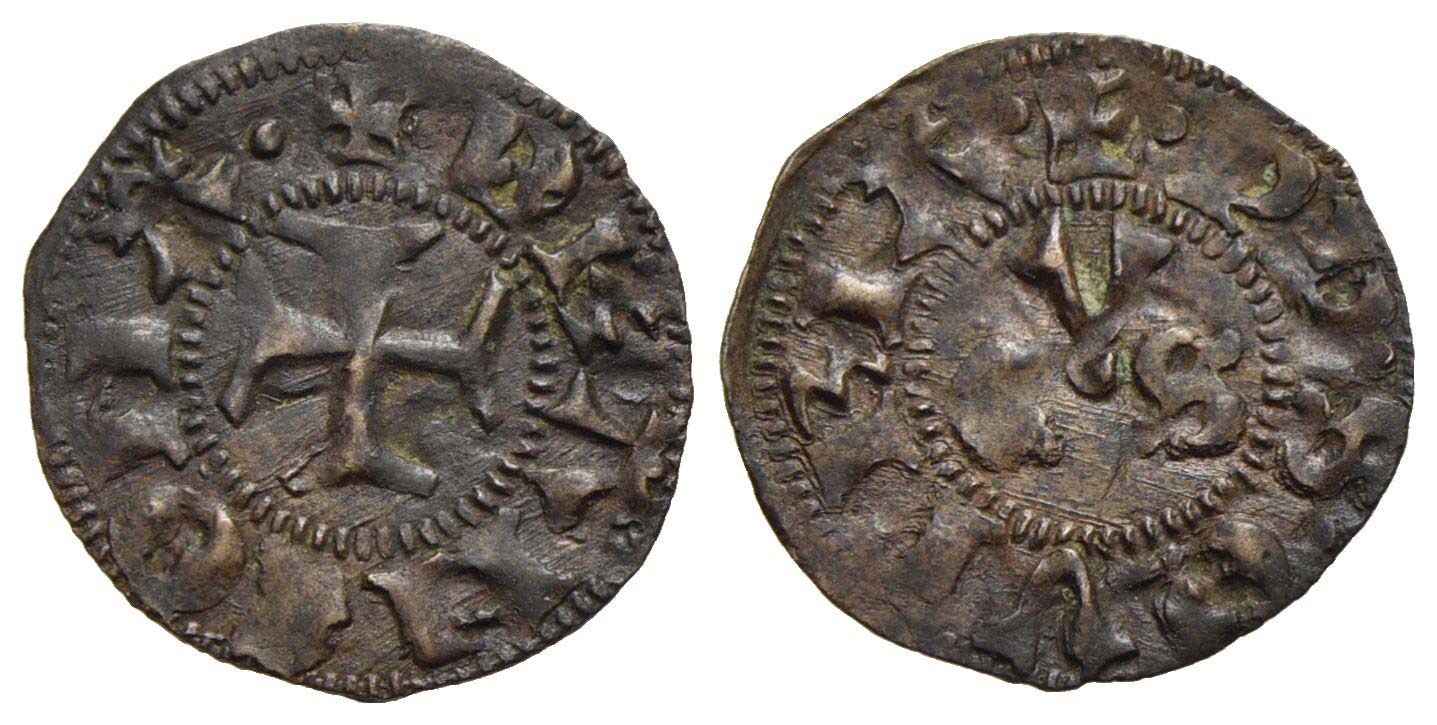 ANCONA - Repubblica (Sec. XIII-XIV) - Denaro - Croce patente entro cerchio - R/ VCS entro cerchio - (AG g. 0,46)