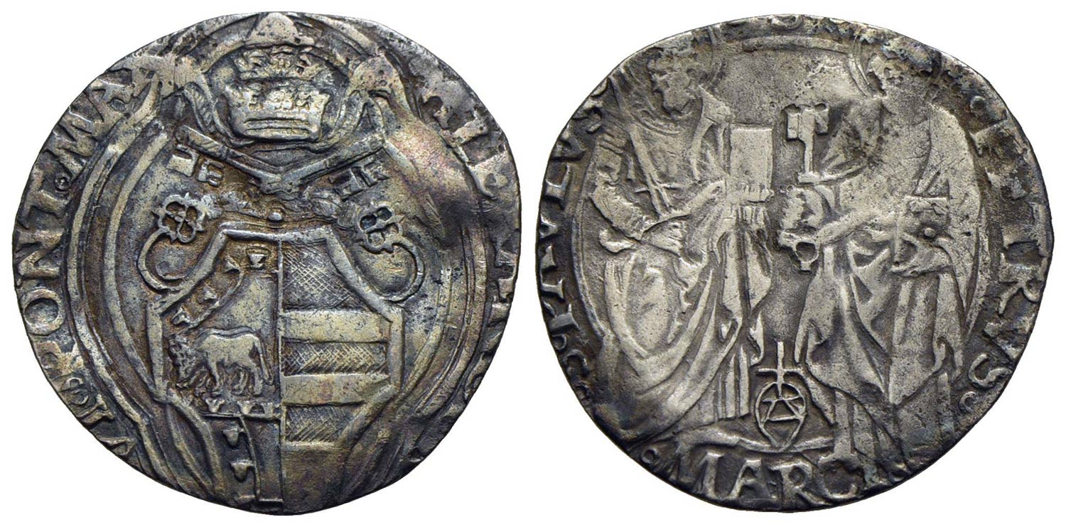 ANCONA - Alessandro VI (1492-1503) - Grosso - Stemma ottagono - R/ San Pietro e San Paolo - (AG g. 2