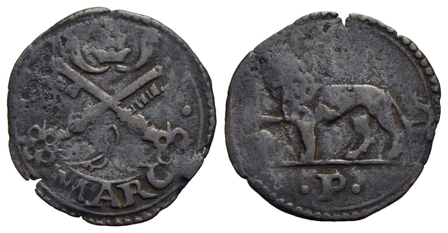 ANCONA - Leone X (1513-1521) - Quattrino - Chiavi decussate - R/ Leone andante a s.; in esergo P - (MI g. 0,56) R CNI 115; Munt. 91