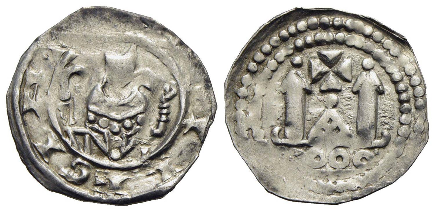 AQUILEIA - Gotifredo (1182-1194) - Denaro - Busto del Patriarca - R/ Tempio con frontone triangolare - (AG g. 0,93) RR Ber. 6; Biaggi 134 (R5)