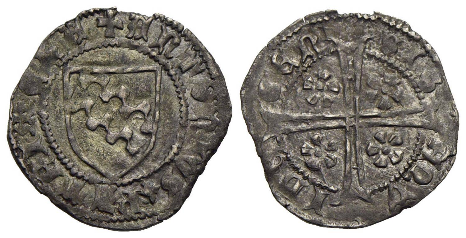 AQUILEIA - Antonio I (1395-1402) - Denaro - Arme del Patriarca - R/ Croce intersecante, con quattro rose - (AG g. 0,79) NC Biaggi 190