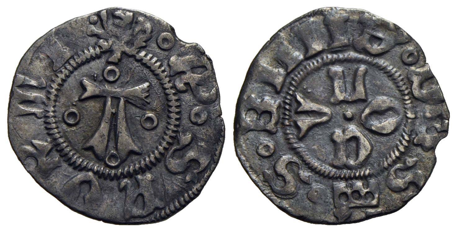 ASCOLI - Francesco I Sforza (1433-1446) - Bolognino - Grande A con 4 anellini - R/ OCVL attorno a globetto - (AG g. 1) NC CNI 1/8; Biaggi 225 Con cartellino del collezionista anni '50-'60