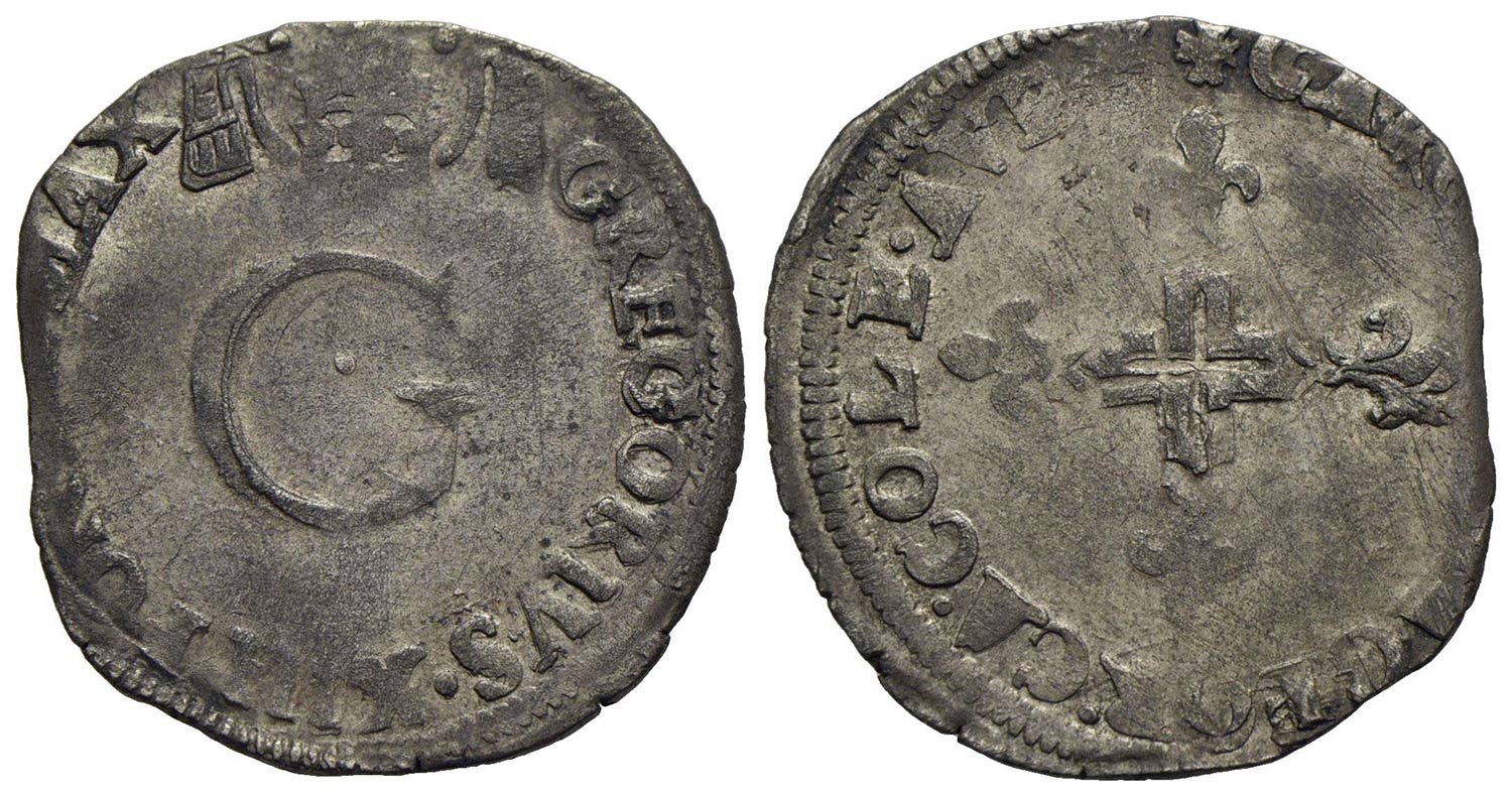AVIGNONE - Gregorio XIII (1572-1585) - Da 6 bianchi - Lettera G coronata da tiara - R/ Croce gigliata - (MI g. 3,8) R Ser. 867; Munt. 341
