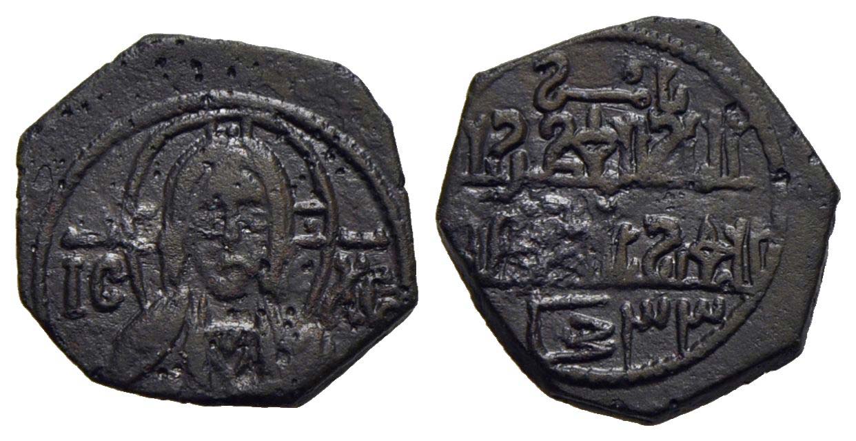 BARI - Ruggero II (1139-1154) - Follaro - Busto nimbato di San Nicola - R/ Legenda cufica - (AE g. 1,24) RR