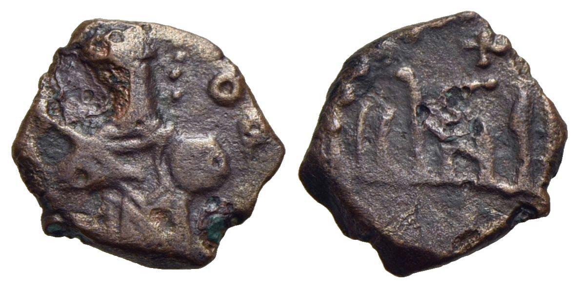 BARI - Ruggero II (1139-1154) - Follaro - San Demetrio nimbato stante di fronte con lancia - R/ Legenda cufica - (AE g. 1,26) RR MIR 133