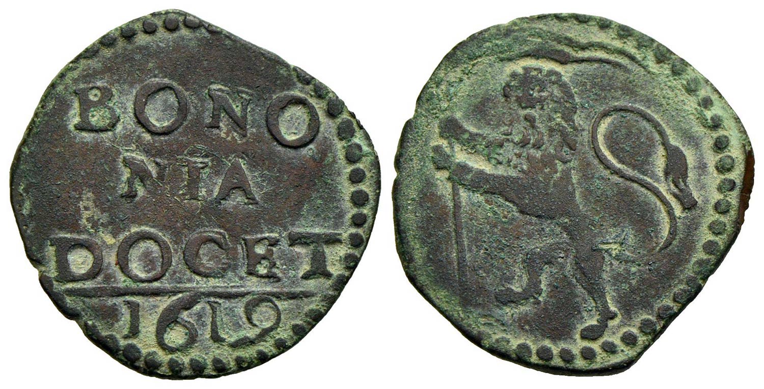 BOLOGNA - Paolo V (1605-1621) - Quattrino - 1619 - Leone vessillifero - R/ Scritta - CU R CNI 37; Mu