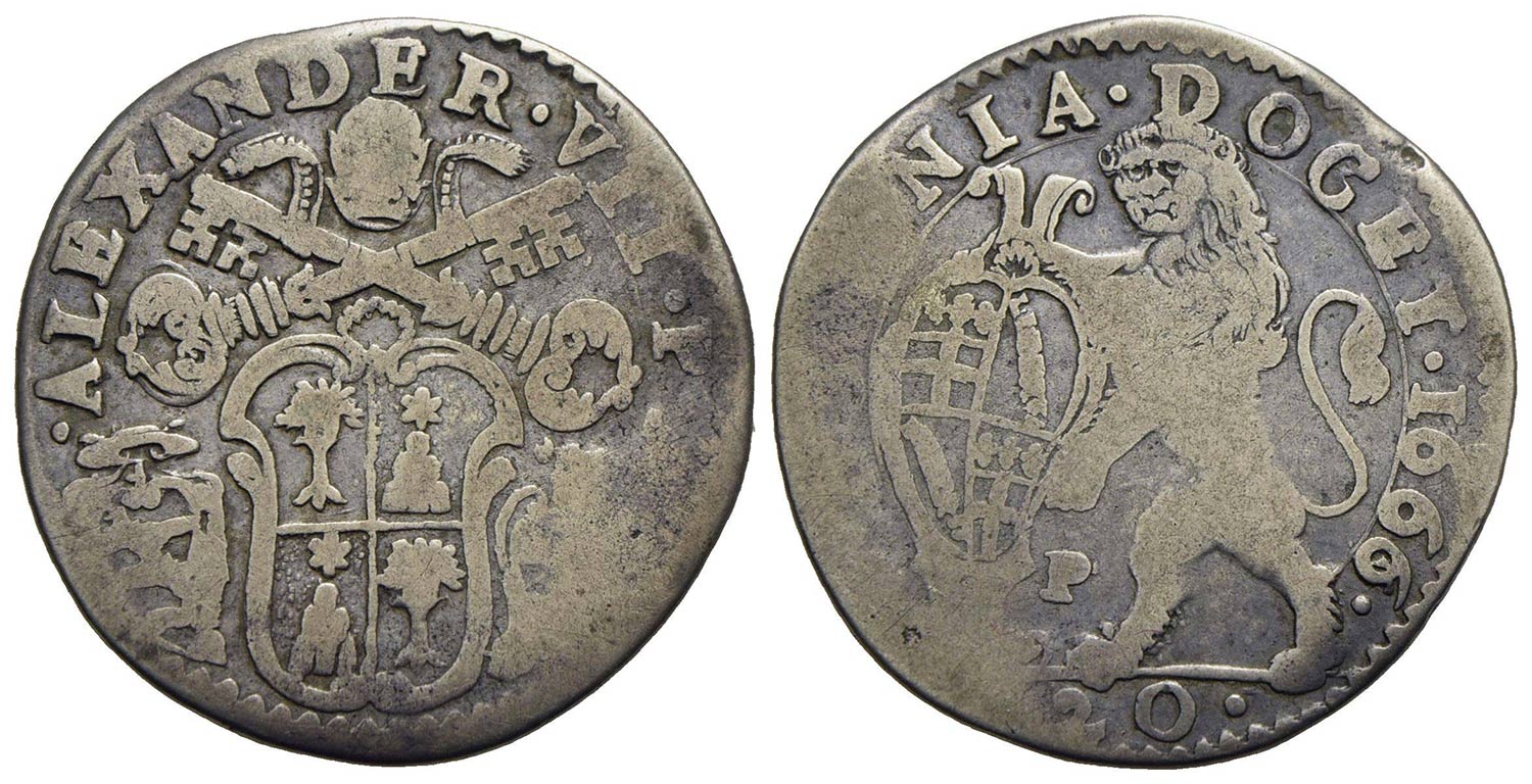 BOLOGNA - Alessandro VII (1655-1667) - Lira - 1666 - Stemma a targa oblunga - R/ Leone rampante a s.