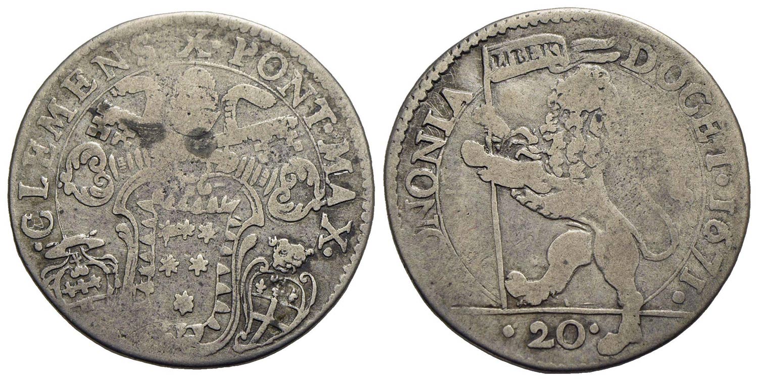 BOLOGNA - Clemente X (1670-1676) - Lira - 1671 - Stemma a targa semiovale - R/ Leone vessillifero ra