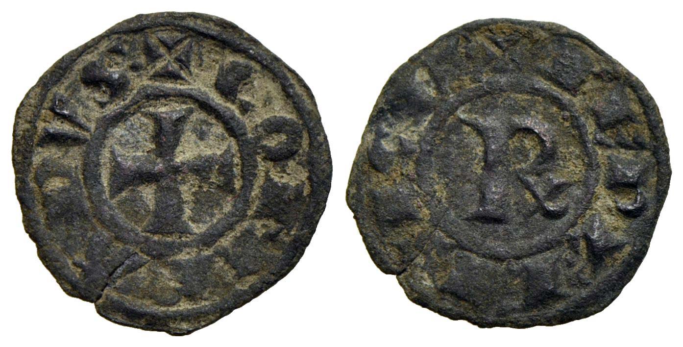 BRINDISI - Corrado I (1250-1254) - Denaro - Croce patente - R/ Grande R - (MI g. 0,69) NC Spahr 153;