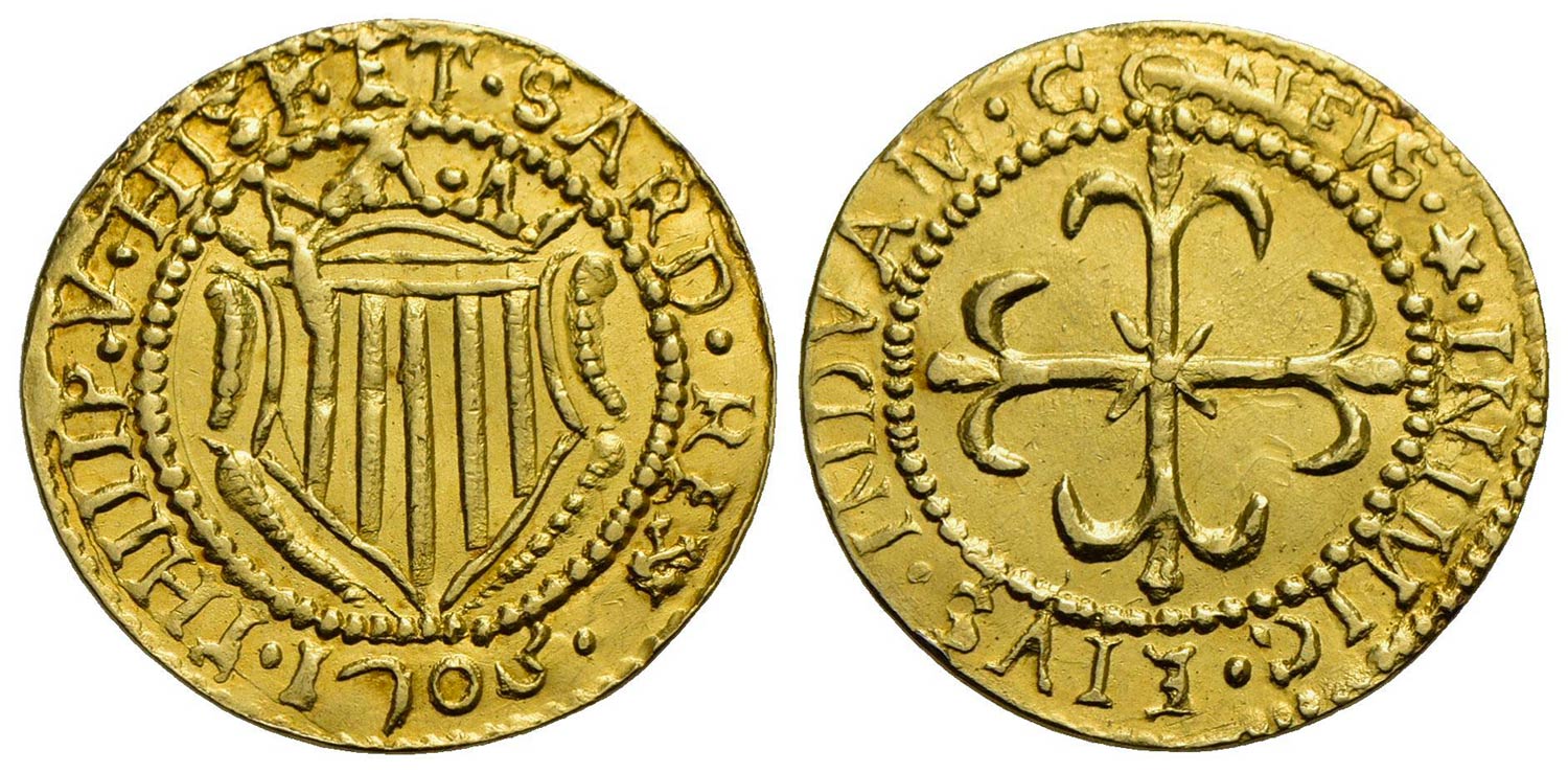 CAGLIARI - Filippo V di Borbone (1700-1707) - Scudo d'oro - 1703 - Stemma coronato - R/ Croce giglia