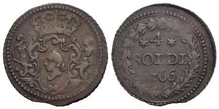 CORTE - Pasquale Paoli (1762-1768) - 4 Soldi - 1766 - Stemma coronato affiancato da due Geni marini - R/ Valore e data in tre righe entro corona - MI R CNI 23; MIR 4/5 Con cartellino del collezionista anni '50-'60