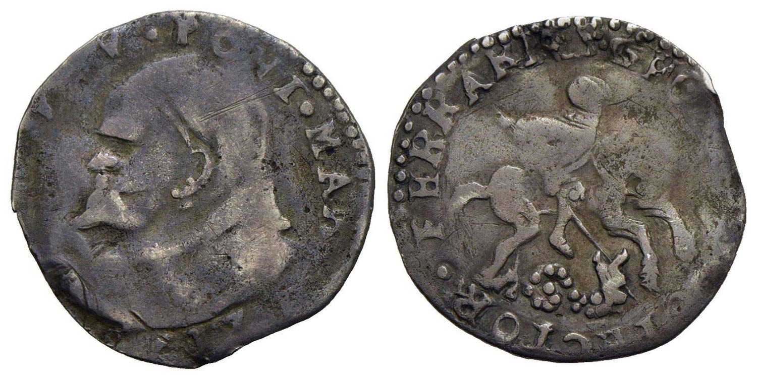 FERRARA - Paolo V (1605-1621) - Grosso - Busto a s. con camauro - R/ San Giorgio a cavallo a d. trafigge il drago - (AG g. 1,3) UNICO ? CNI e Munt. manca; MIR 1608 (questo esemplare) Mancante in tutte le collezioni