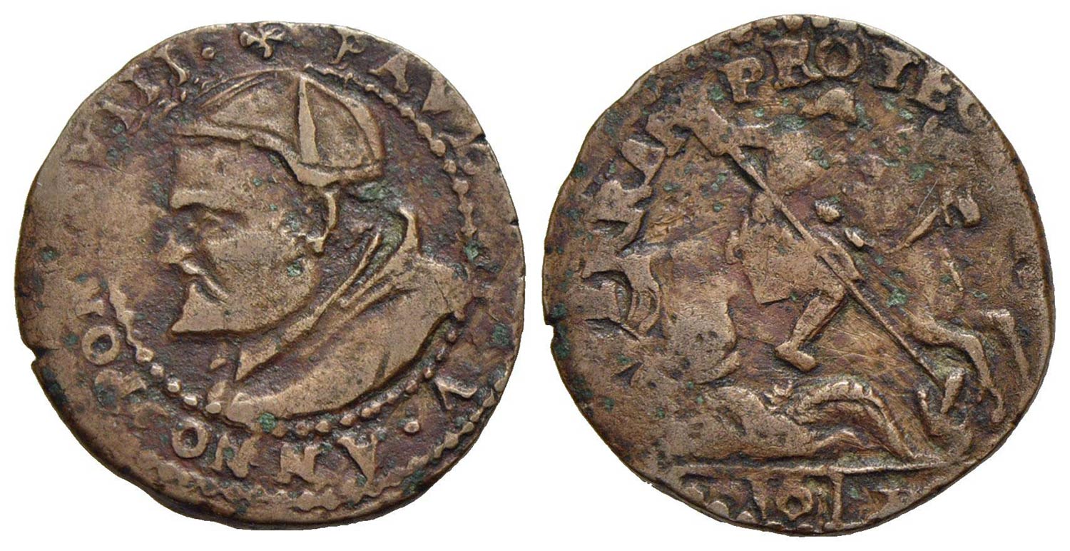 FERRARA - Paolo V (1605-1621) - Quattrino - 161? - Busto a s. con camauro - R/ San Giorgio a cavallo a d. trafigge il drago - CU