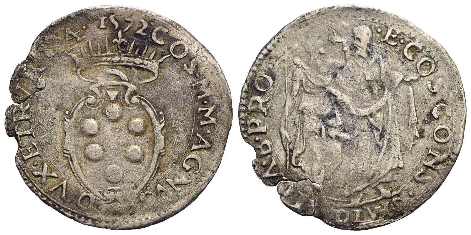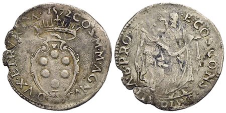 FIRENZE - Cosimo I (1536-1574) - Giulio - 1572 - Stemma ovale coronato - R/ San Giovanni e San Cosimo incedenti a d. - (AG g. 2,77) R CNI 302/305; MIR 170/3 Mancanze marginali del tondello