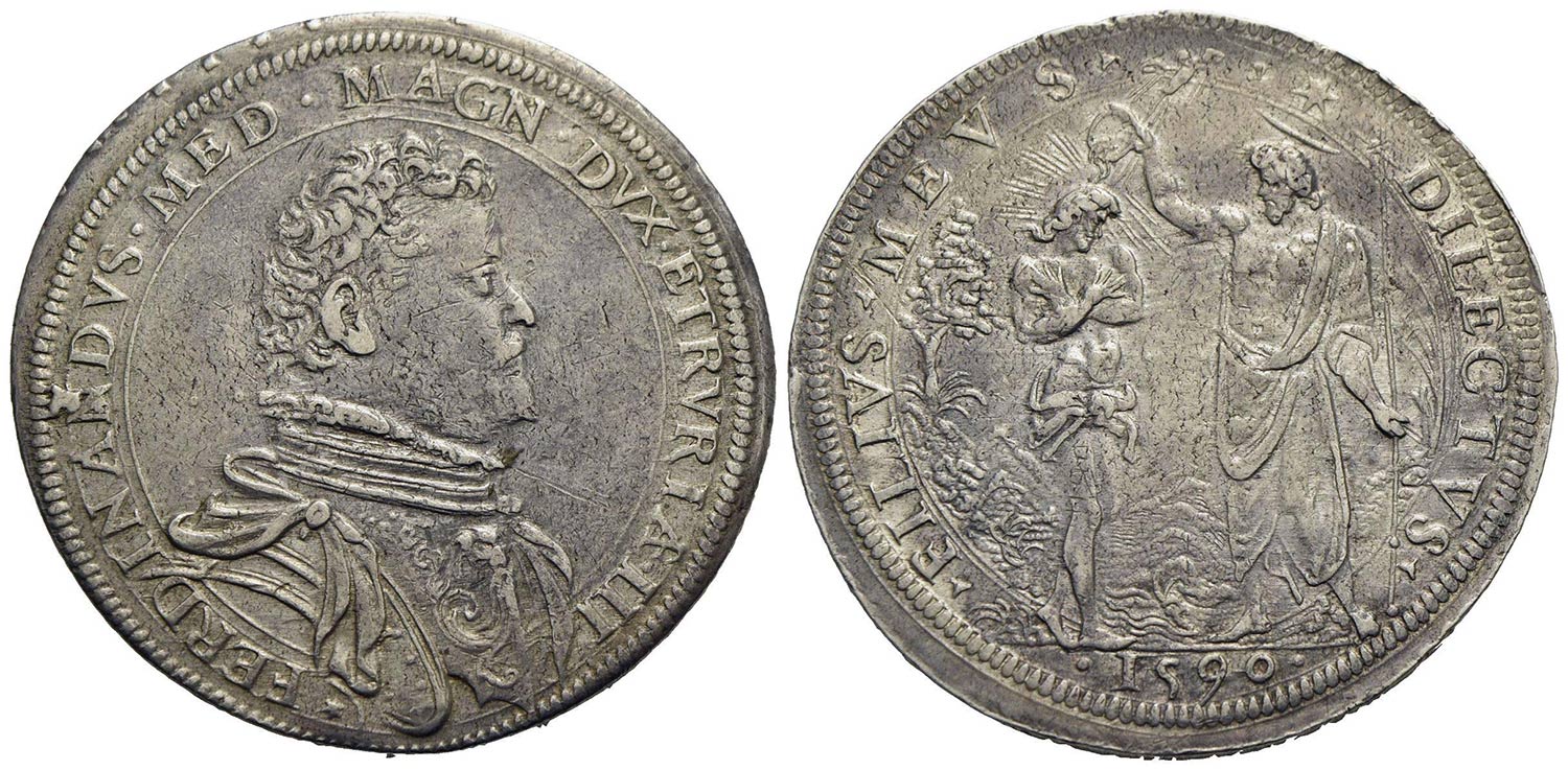 FIRENZE - Ferdinando I (1587-1609) - Piastra - 1590 - AG R CNI 11; MIR 228/1<br>BB+