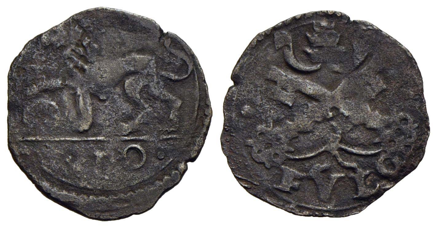 FOLIGNO - Leone X (1513-1521) - Quattrino - Leone a s. - R/ Chiavi decussate - (MI g. 0,65) R CNI 12