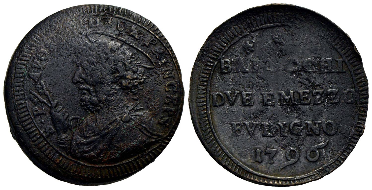 Lotto 1039 | FOLIGNO - Pio VI (1775-1799) - Sampietrino - 1796 - CU NC CNI 12; Munt. 327<br>BB/BB+