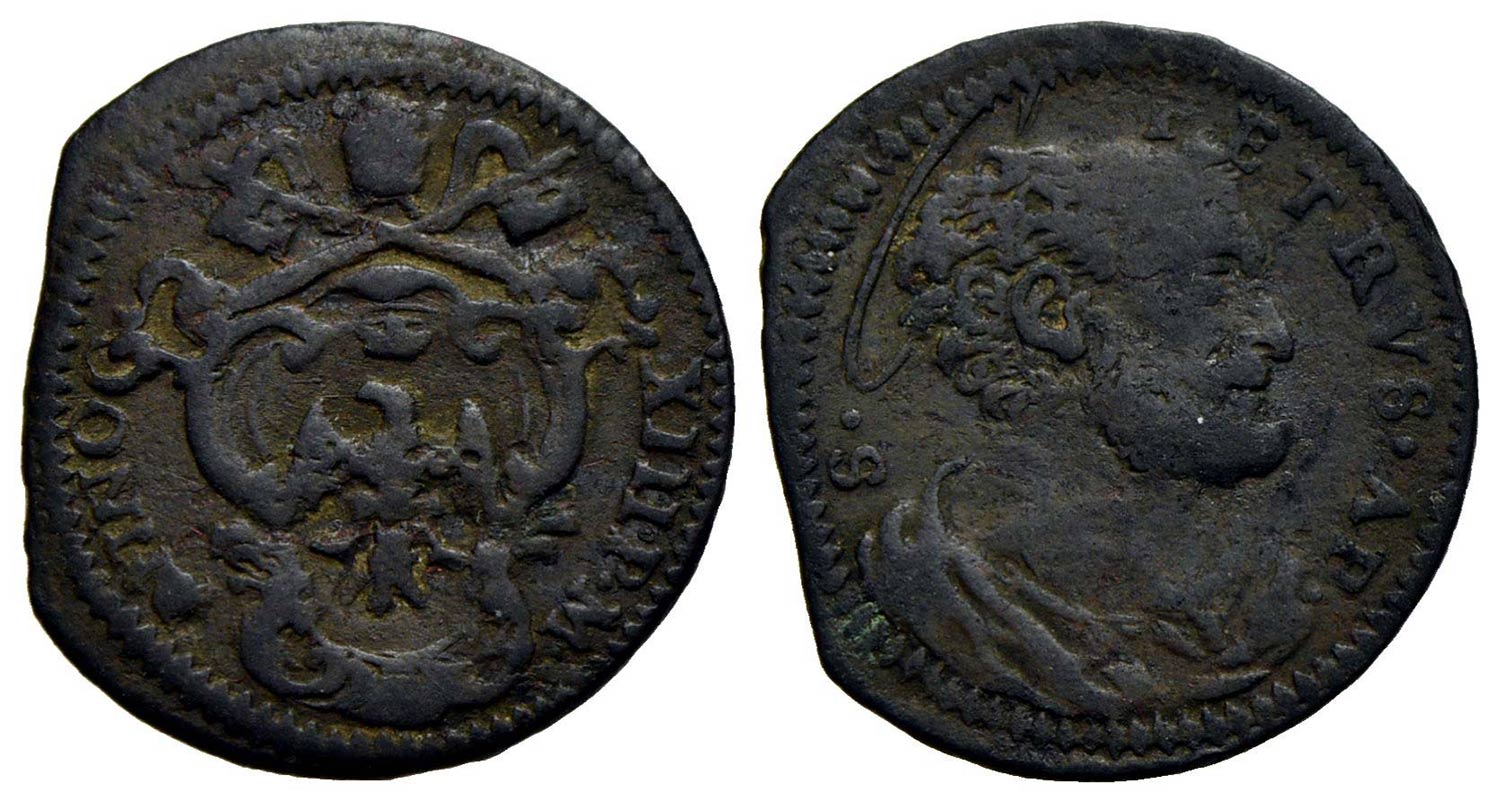 GUBBIO - Innocenzo XIII (1721-1724) - Quattrino - Stemma - R/ Figura del Santo volta a s. - CU R CNI