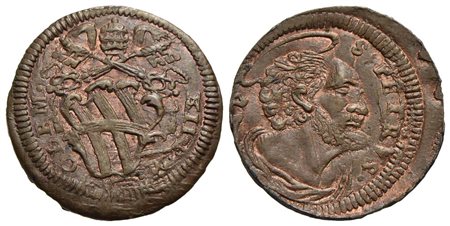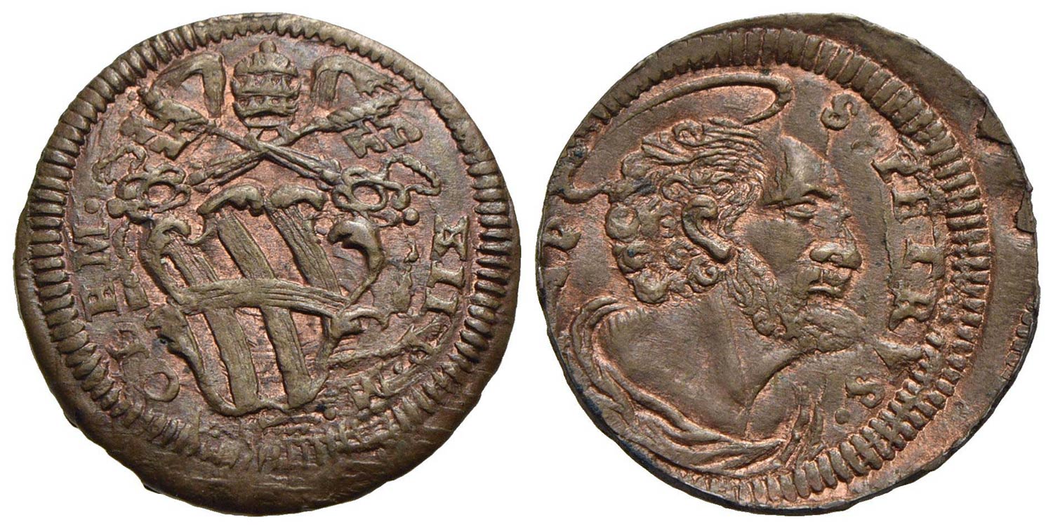 GUBBIO - Clemente XII (1730-1740) - Quattrino - Stemma poligonale - R/ San Pietro - CU R Rame rosso
