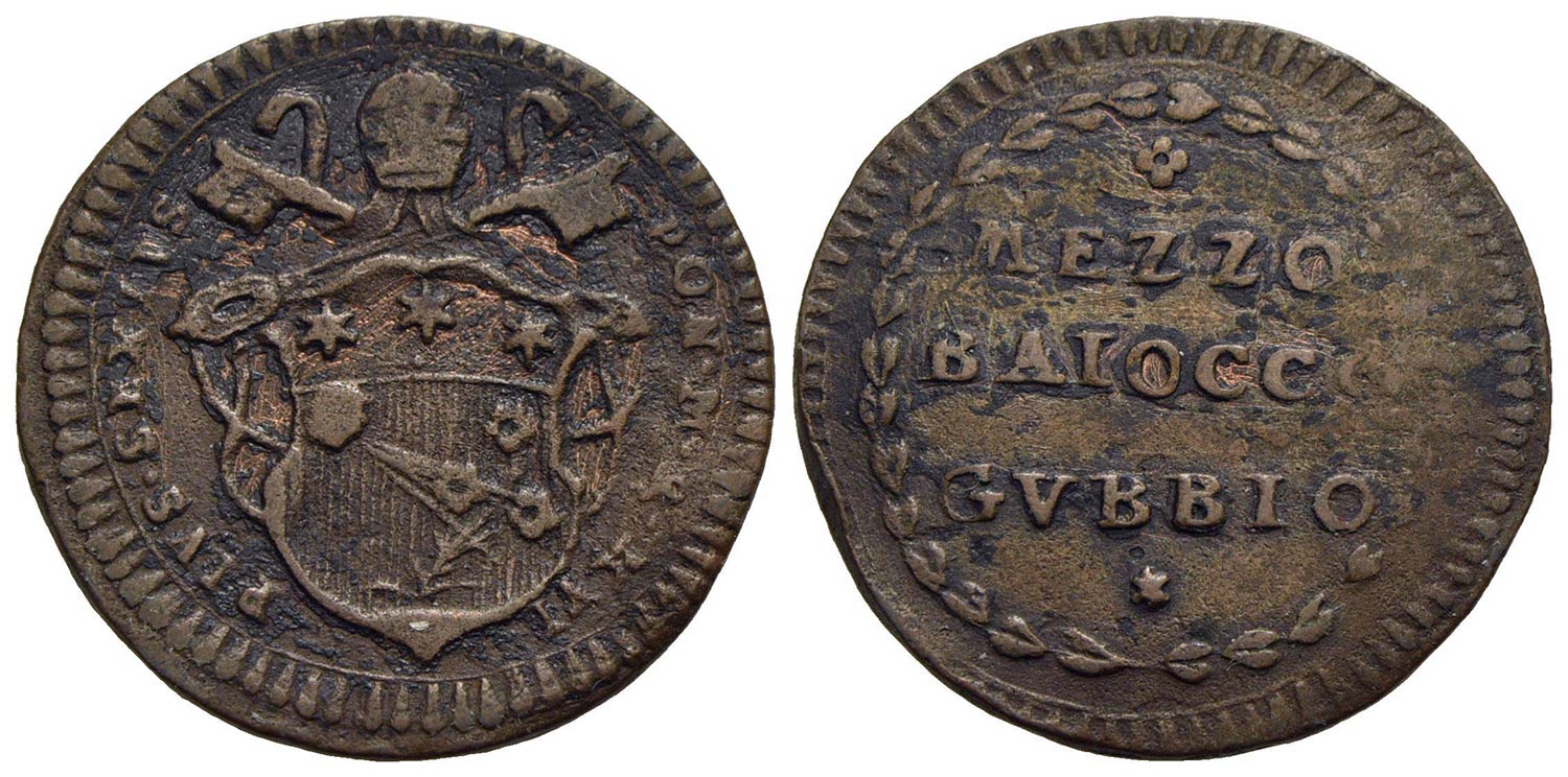 GUBBIO - Pio VI (1775-1799) - Mezzo baiocco - A. XVI - CU R CNI 8; Munt. 367 var. I