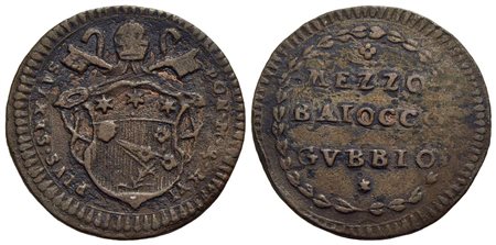 GUBBIO - Pio VI (1775-1799) - Mezzo baiocco - A. XVI - CU R CNI 8; Munt. 367 var. I<br>BB
