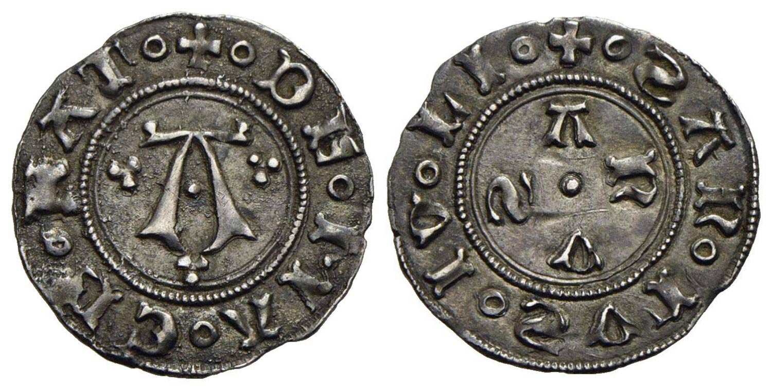 MACERATA - Monetazione autonoma (1392-1447) - Bolognino - Grande A accantonata da tre trifogli - R/