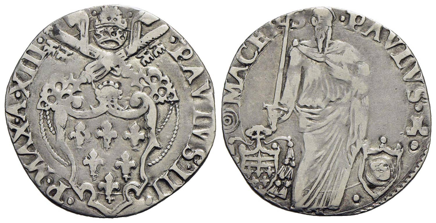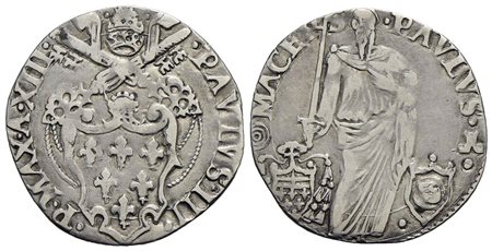 MACERATA - Paolo III (1534-1549) - Giulio - Stemma a targa di volute con cimasa a testa di leone - R/ San Paolo con spada eretta - (AG g. 2,74) R CNI 1; Munt. 136