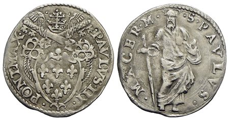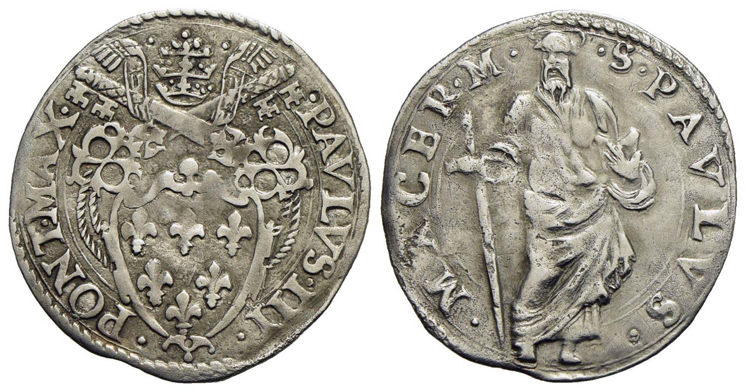 MACERATA - Paolo III (1534-1549) - Grosso - Stemma a cuore non gigliato - R/ Figura di San Paolo - (AG g. 1,72) RR CNI 662; Munt. 149var