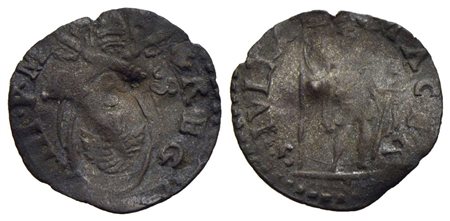 MACERATA - Gregorio XIII (1572-1585) - Quattrino - Stemma ovale - R/ San Giuliano stante - (MI g. 0,47) RR Ser. 824; Munt. 449 Con cartellino del collezionista anni '50-'60