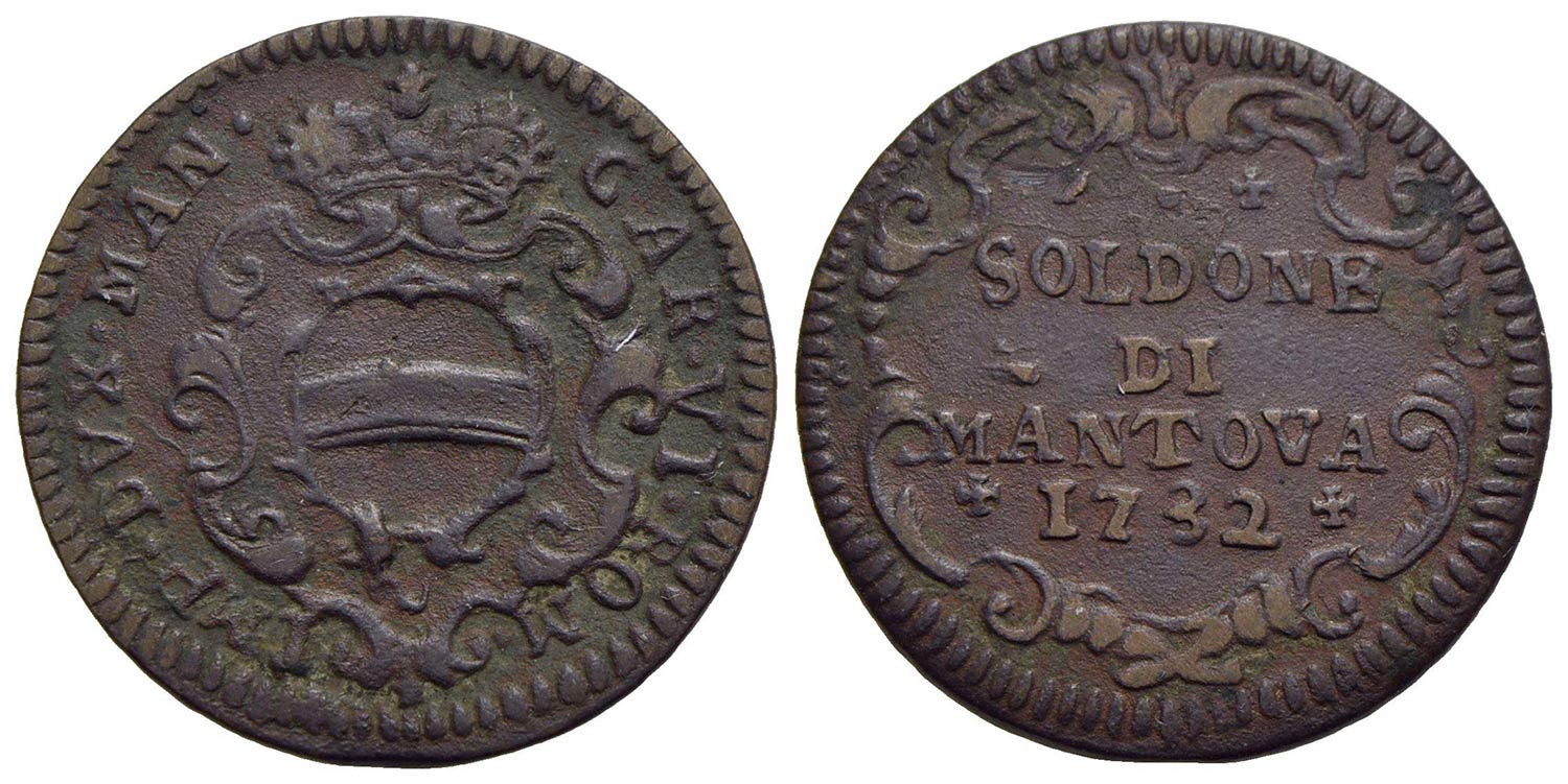 MANTOVA - Carlo VI d'Asburgo (1707-1740) - Soldone - 1732 - CU CNI 13/15; MIR 755/1