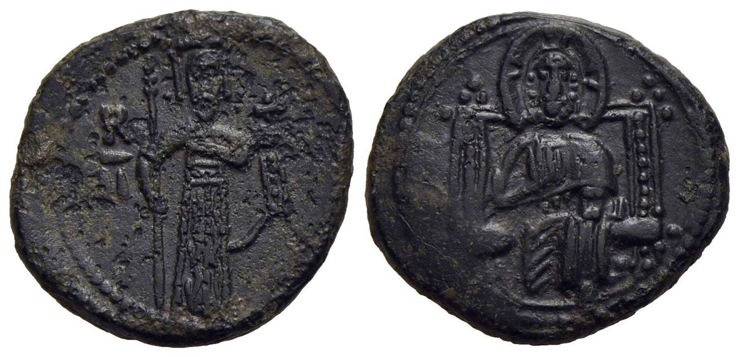 MESSINA - Ruggero II (1105-1154) - Follaro - Il Re stante con globo crucigero e lancia - R/ Il Redentore seduto in trono - (AE g. 5) R Spahr 53; MIR 19