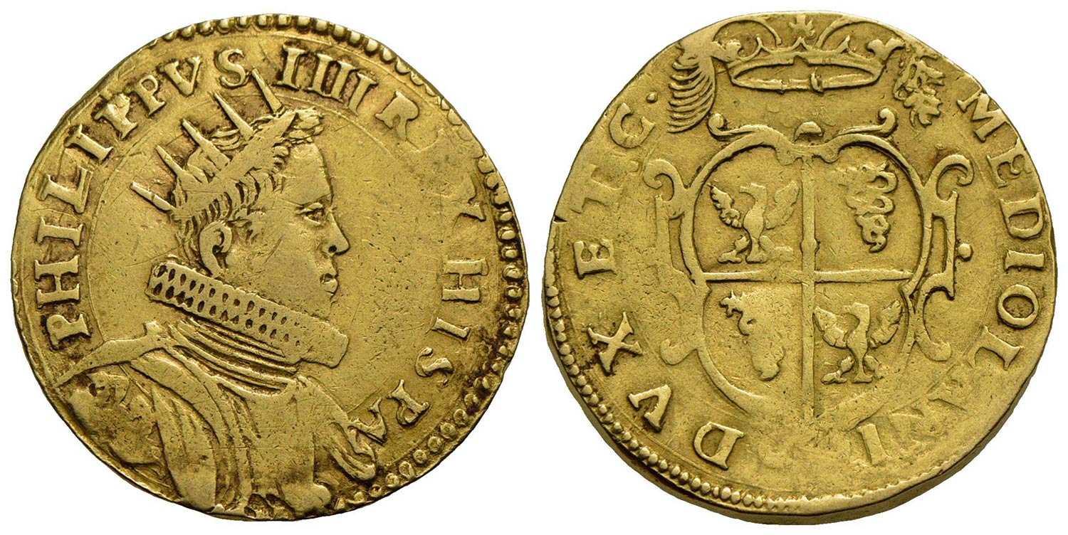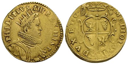 MILANO - Filippo IV (1621-1665) - Quadrupla - Busto radiato a d. - R/ Stemma inquartato - (AU g. 13,2) RRR CNI 155/162; Crippa 1/2