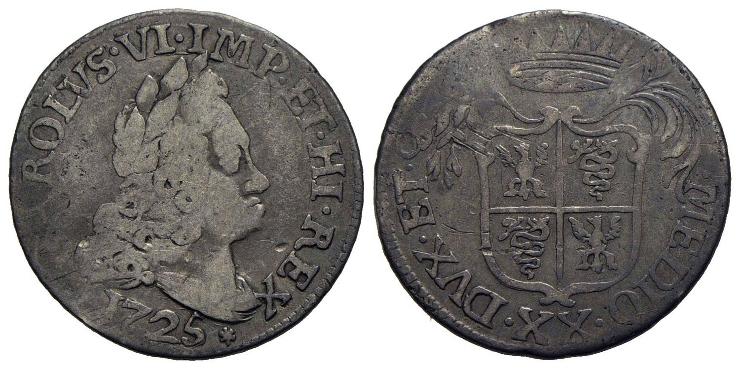 MILANO - Carlo III d'Asburgo (1706-1740) - 20 Soldi - 1725 - (AG g. 3,59) R Crippa 20/d; MIR 414/4<b