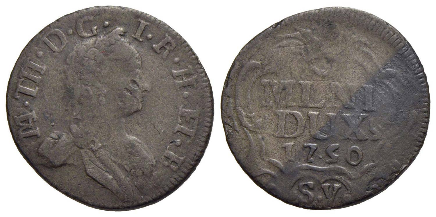 MILANO - Maria Teresa d'Asburgo (1740-1780) - 5 Soldi - 1750 - MI R Crippa 11B-C; MIR 428/2<br>qBB/B