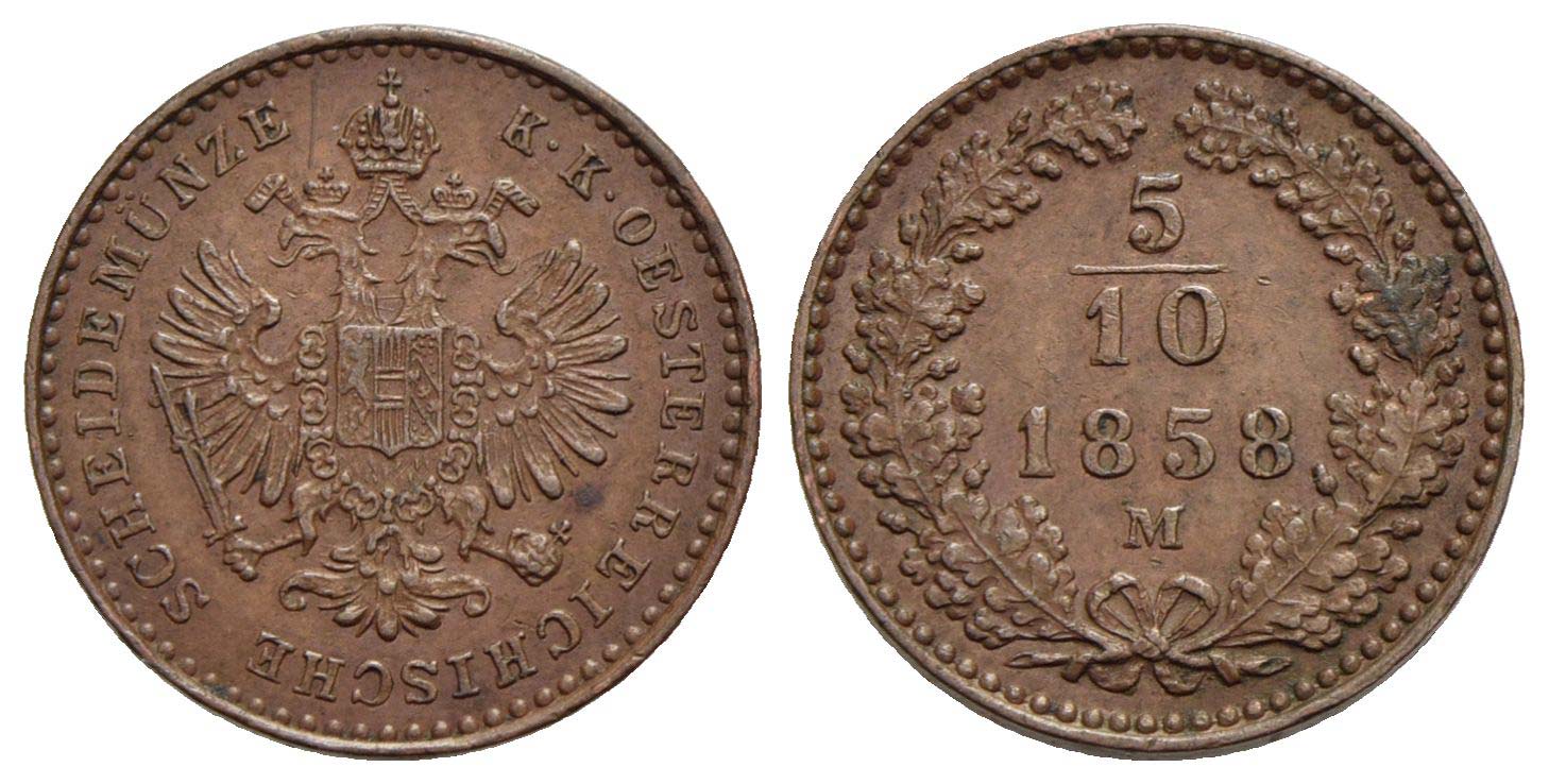 MILANO - Francesco Giuseppe I d'Asburgo-Lorena (1848-1866) - Mezzo kreuzer - 1858 - CU NC Pag. 252; Mont. 475