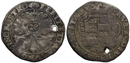 MONACO - Onorato II Grimaldi, Protettorato Francese (1641-1662) - Da 28 Bolognini per il Levante - Busto a d. - R/ Stemma coronato - AG RR Forato