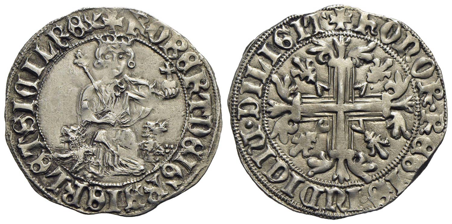 NAPOLI - Roberto d'Angiò (1309-1343) - Gigliato - Il Re seduto in trono - R/ Croce gigliata Ø: 28 mm