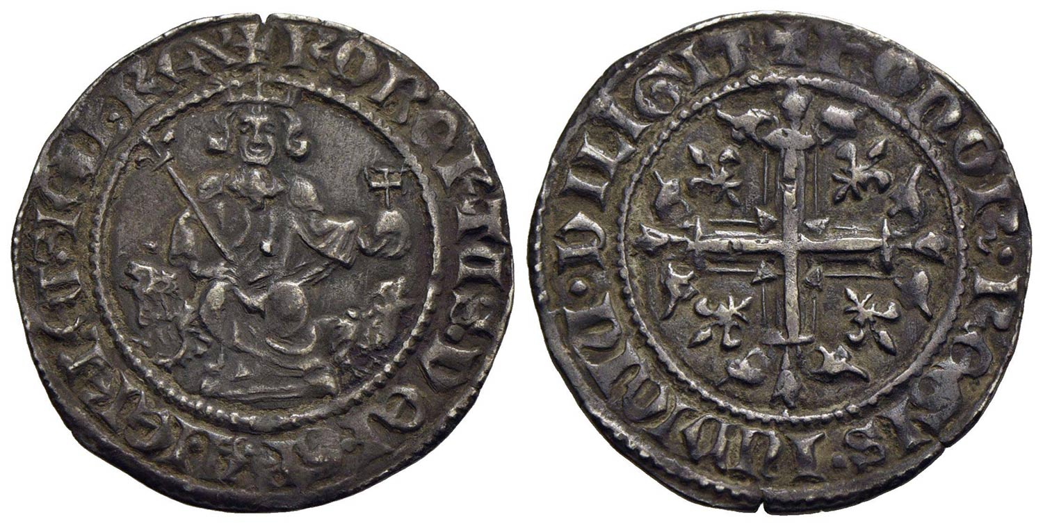 NAPOLI - Roberto d'Angiò (1309-1343) - Gigliato - Il Re seduto in trono - R/ Croce gigliata - (AG g. 3,72) P.R. 1/2; MIR 28 ROBERTVS Patina scura