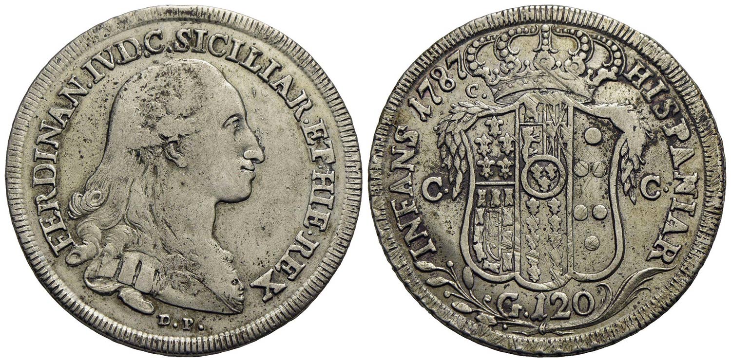 NAPOLI - Ferdinando IV di Borbone (primo periodo, 1759-1799) - Piastra - 1787 - AG P.R. 51; Mont. 19