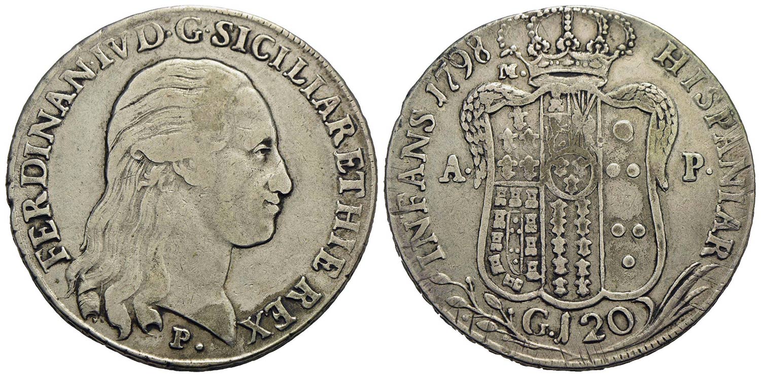 NAPOLI - Ferdinando IV di Borbone (primo periodo, 1759-1799) - Piastra - 1798 - AG P.R. 63; Mont. 21