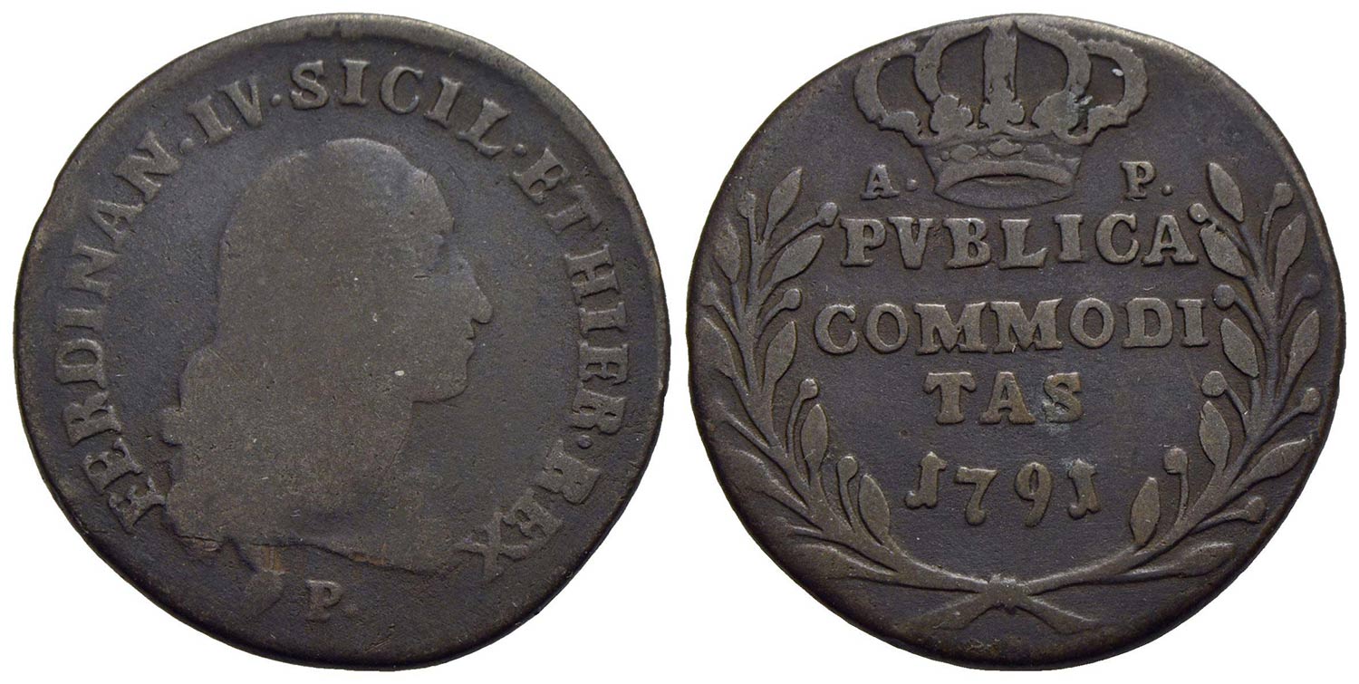 NAPOLI - Ferdinando IV di Borbone (primo periodo, 1759-1799) - Pubblica - 1791 - CU R P.R. 107; Mont. 279