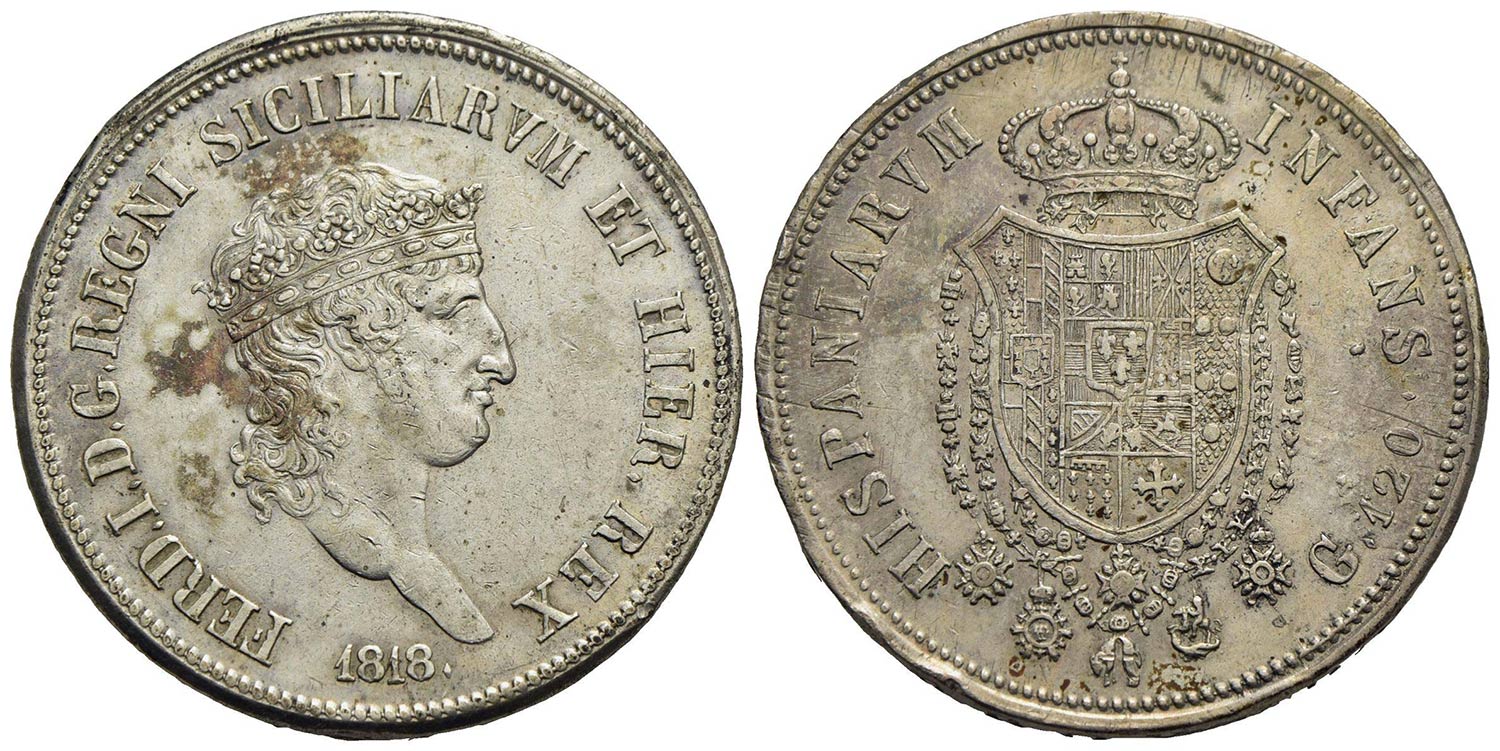 NAPOLI - Ferdinando I di Borbone (1816-1825) - Piastra - 1818 - AG P.R.8; Mont. 578/584 Testa piccol