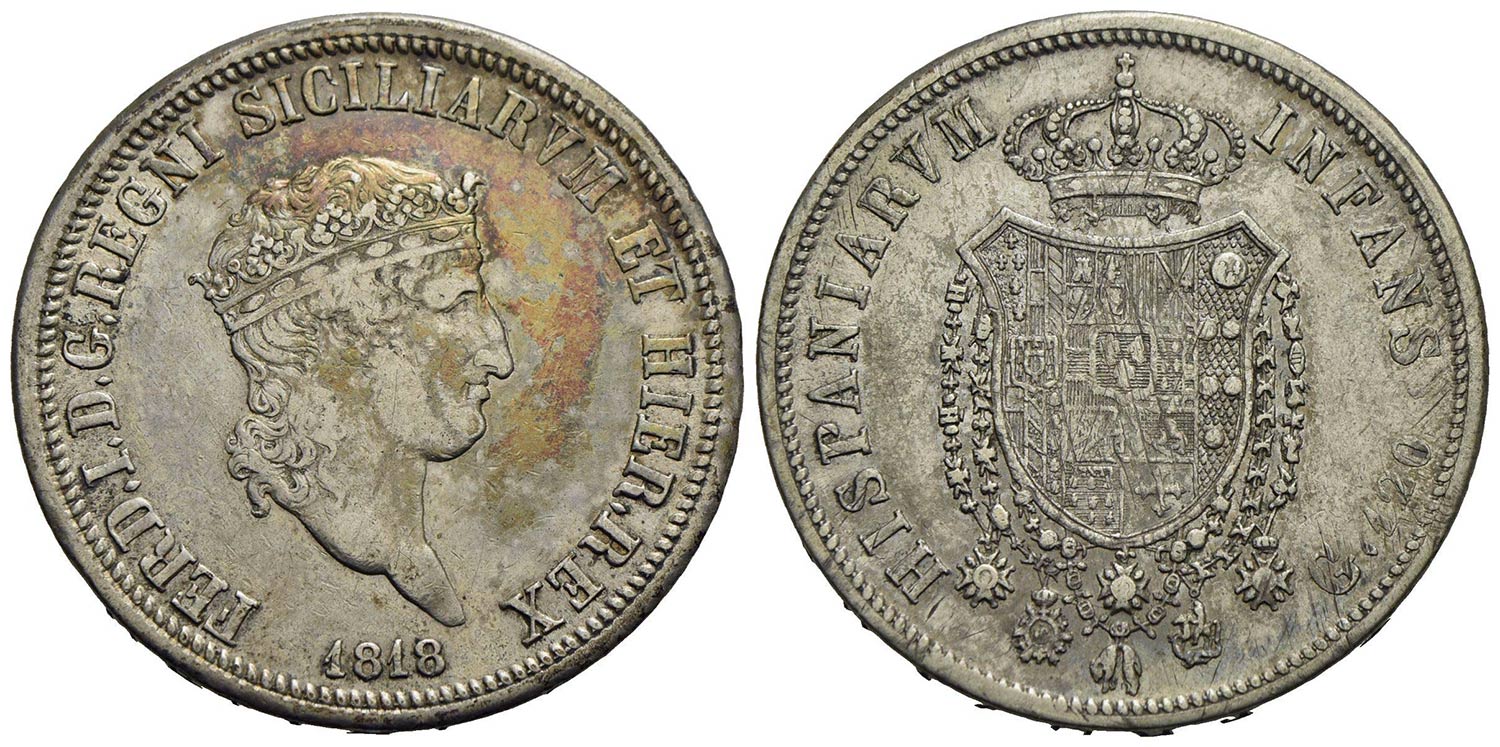 NAPOLI - Ferdinando I di Borbone (1816-1825) - Piastra - 1818 - AG P.R.8; Mont. 578/584 Testa piccol