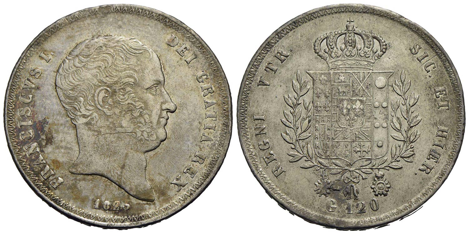 NAPOLI - Francesco I di Borbone (1825-1830) - Piastra - 1825 - AG P.R. 6; Mont. 636/641 Con cartelli