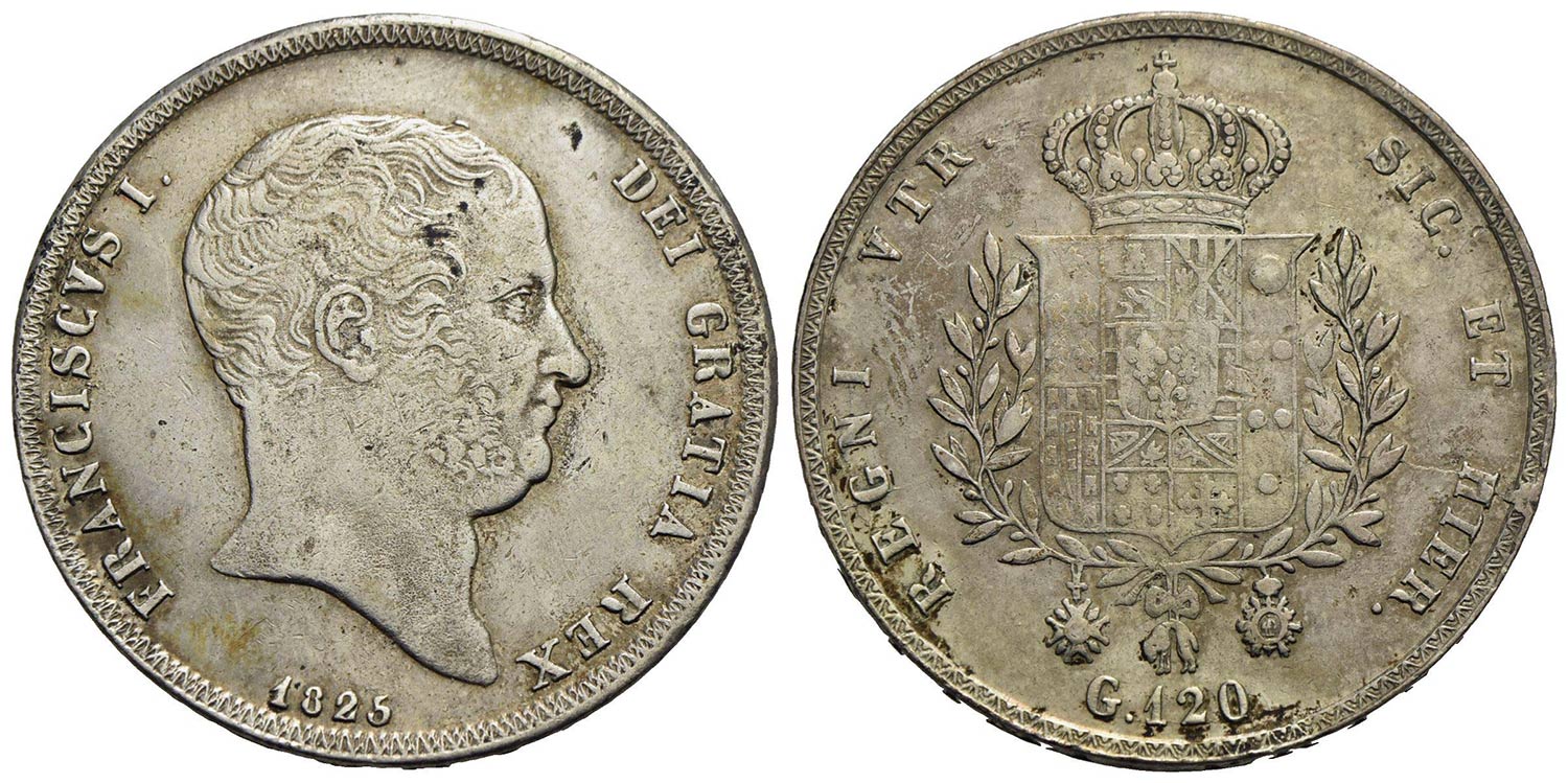 NAPOLI - Francesco I di Borbone (1825-1830) - Piastra - 1825 - AG P.R. 6; Mont. 636/641 Con cartelli