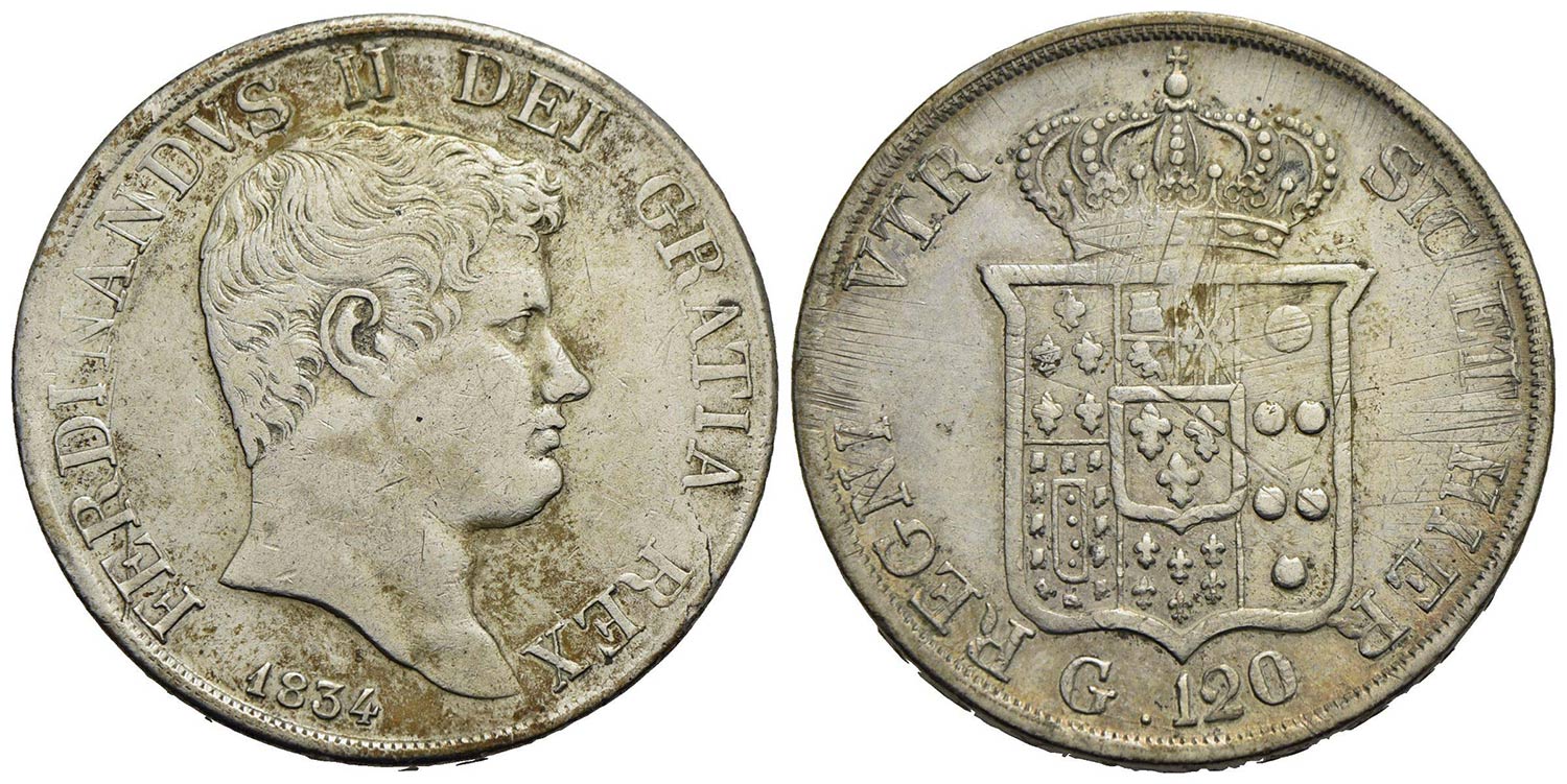 NAPOLI - Ferdinando II di Borbone (1830-1859) - Piastra - 1834 - AG P.R. 58; Mont. 745/749 Con carte