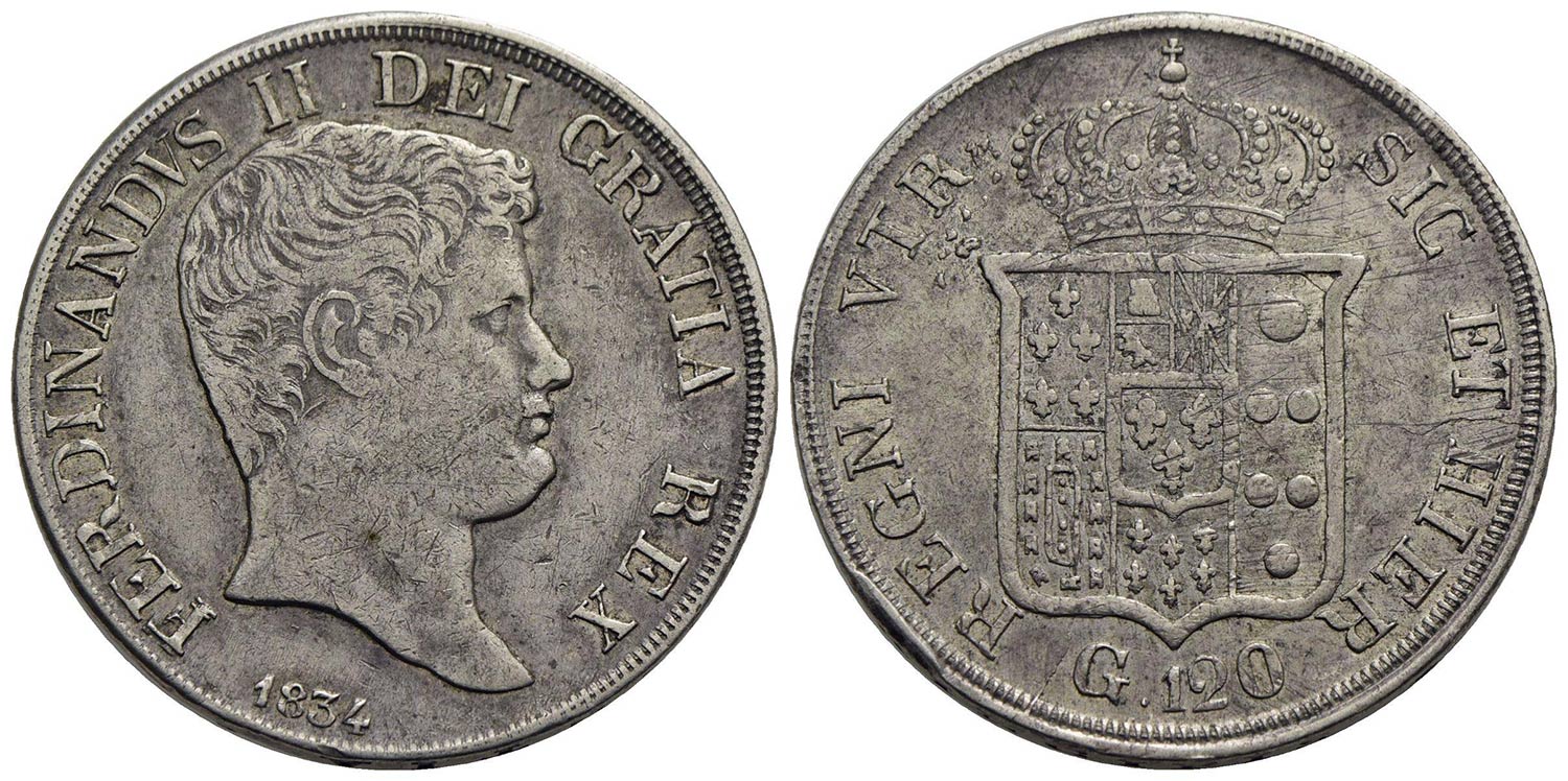 NAPOLI - Ferdinando II di Borbone (1830-1859) - Piastra - 1834 - AG P.R. 58; Mont. 745/749 Colpetti