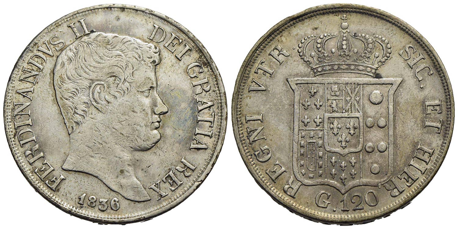 NAPOLI - Ferdinando II di Borbone (1830-1859) - Piastra - 1836 - AG P.R. 61; Mont. 753/754 Con carte